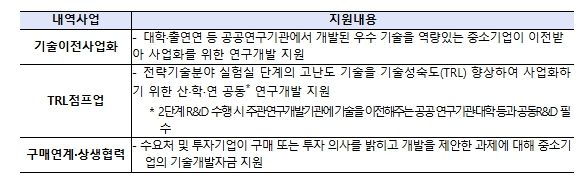민관공동기술사업화 연구개발(R&D)은 기획부터 시장진출까지 민관 협력형 기술사업화 전주기를 지원해 공급-수요 간 기술성숙도 간극을 최소화하기 위해 신설된 기술사업화 전용 연구개발(R&D) 사업이다.