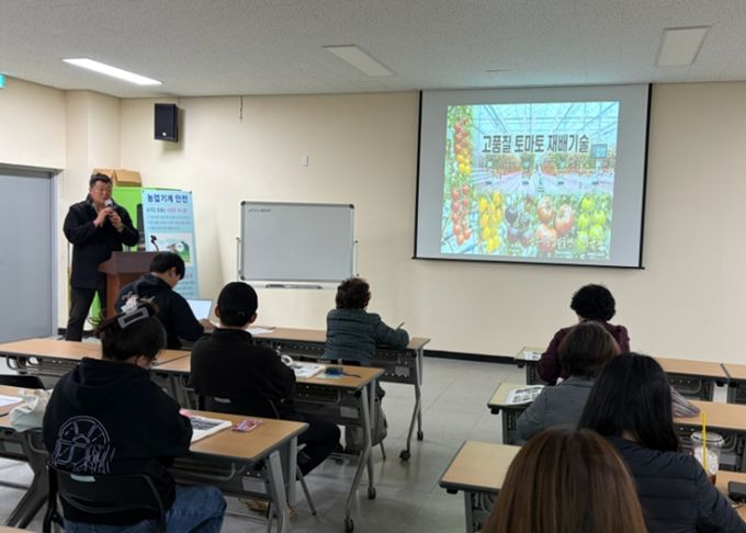 첫 교육은 원예작물 재배기술 이론을 중심으로 진행됐으며, 토마토 생육에 영향을 미치는 환경요인과 생리적 특성, 토양 및 비료의 특성 등에 대해 상세하게 다루었다.