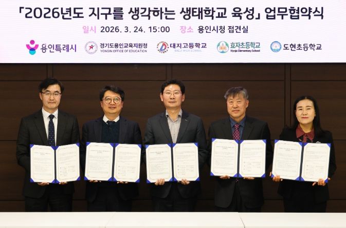 미디어라이프 중부신문 이종인 기자 | 용인특례시는 24일 시청 접견실에서 용인교육지원청을 비롯해 3개 학교와 ‘지구를 생각하는 생태학교 육성사업’을 위한 협약을 맺었다.