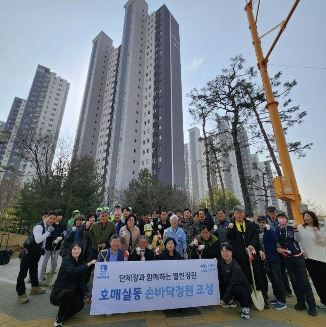 미디어라이프 중부신문 이종인 기자 | 지난 24일, 수원시 권선구 호매실동은 쾌적한 마을 환경 조성과 도심 속 정원 문화 확산을 위해 아파트 단지 인근 유휴지에 ‘손바닥 정원’을 조성했다.
