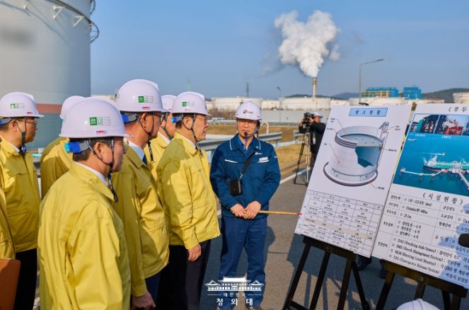 이재명 대통령은 현장 간담회 이후 서산비축기지 내 원유비축탱크 시설을 점검했다. 특히 비축유 저장 체계와 입출하 시스템 전반에 대한 설명을 들은 뒤, 화재 등 안전사고에 대비한 대응을 구체적으로 점검하기도 했다.