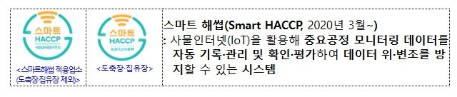 스마트 해썹은 식품 및 축산물의 생산과정에서 발생할 수 있는 위해요소를 더욱 효과적으로 제어하기 위해 측정센서, IoT(사물인터넷), 자동기록장치 등 디지털 기술을 활용하여 중요공정을 관리하는 해썹 관리 방식이다.