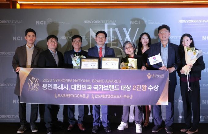 미디어라이프 중부신문 이종인 기자 | 용인특례시가 칸 국제광고제, 클리오광고제와 함께 세계 3대 광고제로 꼽히는 뉴욕페스티벌(NYF)이 주관하는 ‘2026 뉴욕페스티벌 대한민국-국가브랜드 대상’(NYF K-NBA)에서 도시브랜드(CI) 부문과 반도체산업 선도 도시 부문 1위로 선정됐다.