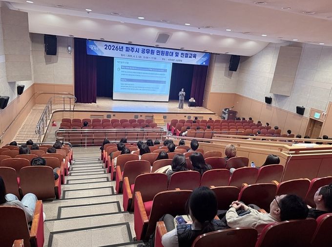 미디어라이프 중부신문 이종인 기자 | 파주시는 지난 3일 파주시민회관 소공연장에서 민원 담당 공무원 220명을 대상으로 민원 응대 역량 강화를 위한 녪년 파주시 공무원 민원응대 및 친절교육’을 실시했다.