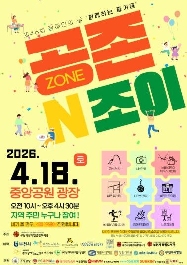 미디어라이프 중부신문 이종인 기자 | 부천시장애인종합복지관은 오는 4월 18일 중앙공원 광장에서 제46회 장애인의 날 기념행사 ‘공존N조이’를 개최한다. 이번 행사는 장애인과 지역 주민이 다양한 체험과 참여 프로그램을 통해 자연스럽게 어울리며 공존의 가치를 공유하는 지역문화 축제로 기획됐다.