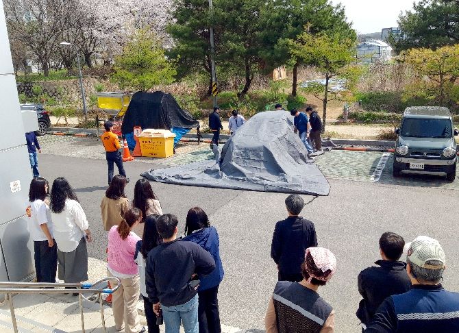 시청각 자료를 활용한 화재 예방 및 초기 진압 교육으로 시작하여, 파주소방서 소방대원의 현장 지도를 바탕으로 질식소화포를 이용한 전기차 화재 진압 훈련을 직접 체험하며 전기차 화재 상황을 가정한 훈련을 진행했다.