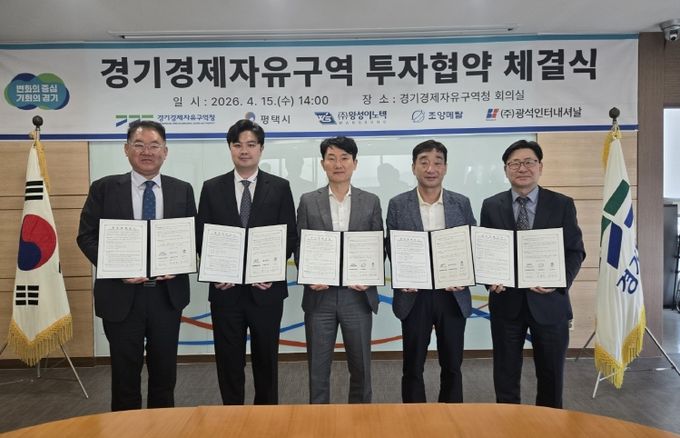 미디어라이프 중부신문 이종인 기자 | 경기경제자유구역청은 15일 경기경제청 8층 회의실에서 평택시 및 자동차부품, 반도체, 화학 제조기업 5개사(㈜왕성이노텍, 조양메탈㈜, ㈜광석인터내셔날/그 외 2개 기업 서면 협약)와 평택 포승(BIX)지구 산업시설용지 투자협약을 체결했다.