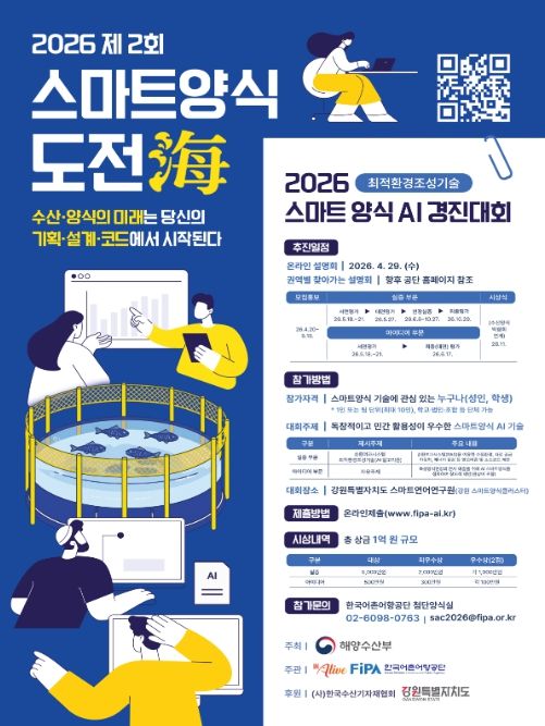 미디어라이프 중부신문 이건영 기자 | 해양수산부와 한국어촌어항공단(이사장 홍종욱)은 4월 20일부터 5월 15일까지 ‘제2회 스마트양식 도전해(海) 경진대회’의 공모를 실시한다고 밝혔다.