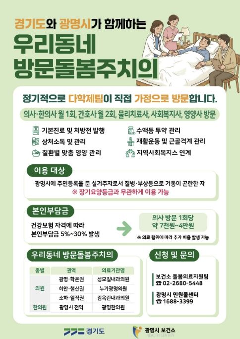 미디어라이프 중부신문 이종인 기자 | 장기요양등급이 없는 광명시민도 집에서 방문돌봄주치의 진료를 받을 수 있게 된다.