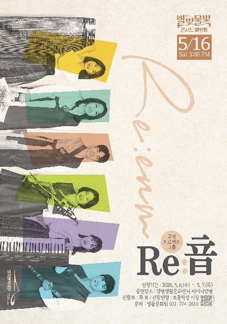 미디어라이프 중부신문 최부일 기자 | 양평문화재단은 오는 5월 16일 오후 3시, 양평문화재단 2층 씨어터양평에서 ‘별빛물빛 콘서트 in 양평’ 5월 정기공연으로 국악 프로젝트 그룹 Re:音(리음)의 공연 ‘국악의 빛으로 물든 디즈니’를 선보인다.