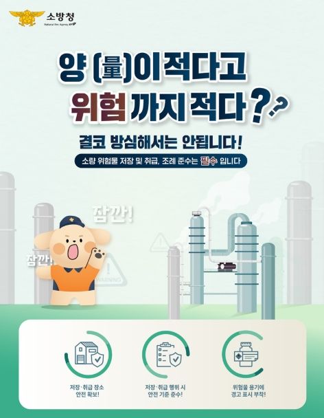 - 소량 위험물 저장 및 취급, 조례 준수는 필수입니다.