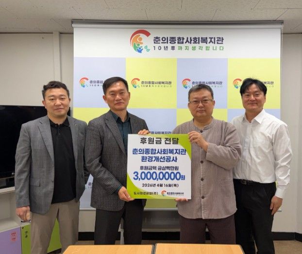 미디어라이프 중부신문 이종인 기자 | 도시환경실업(주)는 지역사회 복지환경 개선과 나눔 문화 확산을 위해 춘의종합사회복지관에 환경개선공사 후원금 300만원을 전달했다. 이번 후원은 복지관 시설 환경을 개선해 지역 주민들이 보다 안전하고 쾌적한 환경에서 복지서비스를 이용할 수 있도록 지원하기 위해 마련됐다.