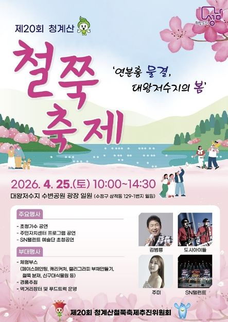 청계산 철쭉축제 추진위원회(위원장 김중진)가 주최하는 이 행사는 매년 상적동 옛골마을 청계산 자락에서 열려왔으나, 올해 3월 대왕저수지 수변공원이 조성된 이후 주말 평균 500명 이상의 방문객이 찾아와 20년 만에 개최지를 옮겼다.