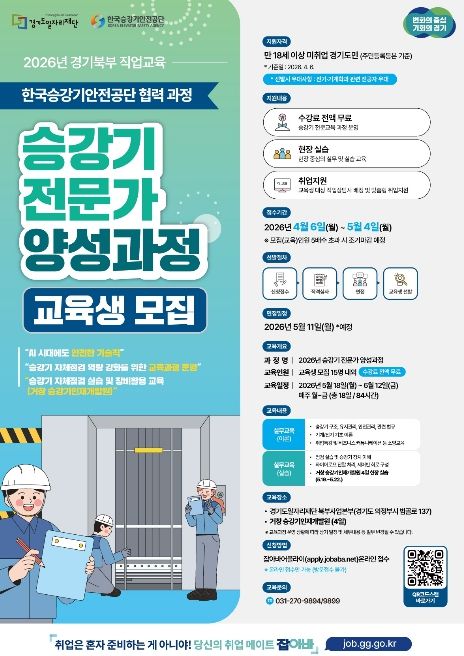 미디어라이프 중부신문 이종인 기자 | 경기도일자리재단은 승강기 전문 인력 양성을 통해 일자리 문제 해결과 지역경제 활성화를 추진하고자 ‘2026년 승강기 전문가 양성 과정’ 교육생을 모집한다고 21일 밝혔다.