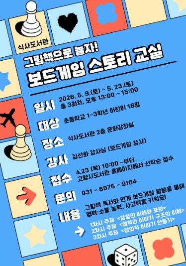 미디어라이프 중부신문 최부일 기자 | 고양특례시 식사도서관이 오는 5월 9일부터 공공도서관 독서문화 프로그램 ‘그림책으로 놀자! 보드게임 스토리 교실’을 운영한다.