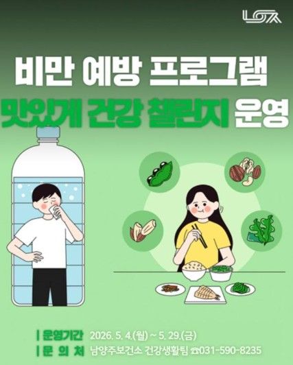 미디어라이프 중부신문 김민정 기자 | 남양주시는 남양주보건소가 5월 한 달간 실천형 비대면 비만 예방 프로그램 ‘맛있게 건강 챌린지’를 운영한다고 21일 밝혔다.