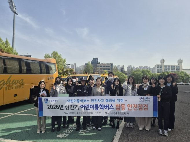 미디어라이프 중부신문 이종인 기자 | 수원특례시는 21일 수원종합운동장 주차구역에서 수원 장안·권선·팔달·영통경찰서, 한국교통안전공단과 함께 ‘2026년 상반기 어린이통학버스 합동 안전점검’을 했다.