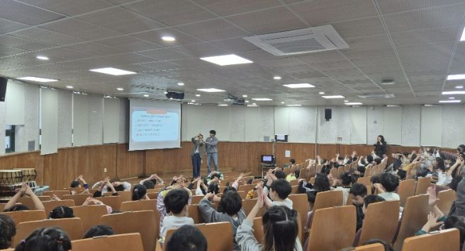 특히 학생들은 “ㄱㅇ”, “ㅅㅆㄱ”, “ㅅㅅㅊ” 등 초성을 보고 ‘감염’, ‘손 씻기’, ‘삼십 초’ 등의 정답을 외치며 즐겁게 교육에 참여했으며, 올바른 손 씻기 방법과 호흡기 감염병 예방수칙을 노래로 익히는 시간을 가졌다. 교육에 참여한 학생들은 “퀴즈로 배우니 재미있고 기억에 잘 남는다”, “집에 가서 가족에게도 알려주겠다”라는 반응을 보이는 등 높은 호응을 보였다.