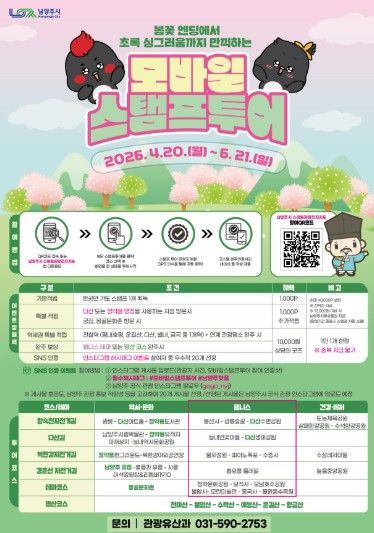미디어라이프 중부신문 김민정 기자 | 남양주시는 역사·힐링·건강·체험을 결합한 ‘2026년 상반기 모바일 스탬프투어’를 오는 6월 21일까지 운영한다고 23일 밝혔다.