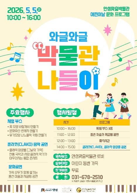 미디어라이프 중부신문 이종인 기자 | 안성맞춤박물관은 오는 5월 5일 어린이날을 맞아, 온 가족이 함께 즐길 수 있는 문화 프로그램 ‘와글와글 박물관 나들이’를 개최한다고 밝혔다.