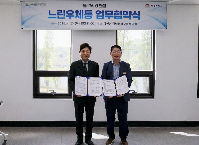 미디어라이프 중부신문 최부일 기자 | 여주세종문화관광재단과 여주우체국은 4월 23일 강천섬 힐링센터에서 ‘슬로우 강천섬 느린우체통 업무협약(MOU)’을 체결했다. 빠르게 흘러가는 일상 속에서 잠시 걸음을 멈추고, 소중한 사람에게 미래의 마음을 전할 수 있는 감성 관광콘텐츠를 공동으로 운영하기 위해서다.