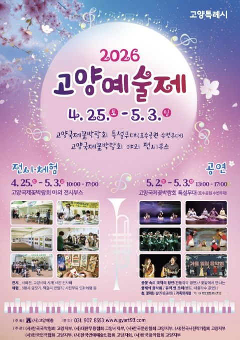 미디어라이프 중부신문 최부일 기자 | 고양특례시의 봄을 수놓는 지역 예술 축제 ‘2026 고양예술제’가 오는 5월 3일까지 고양국제꽃박람회 특설무대와 야외 전시부스에서 개최된다.