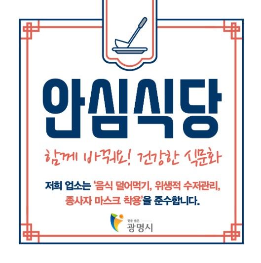 미디어라이프 중부신문 이종인 기자 | 광명시가 시민이 안심하고 이용할 수 있는 깨끗한 식사 환경을 만들고 건강한 외식 문화를 뿌리내리기 위해 ‘2026년 신규 안심식당’ 참여업소를 오는 11월 30일까지 모집한다.