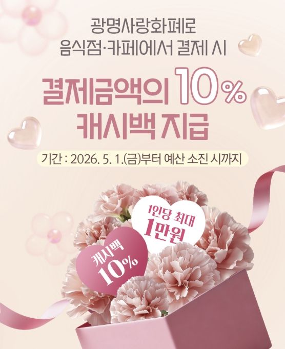 캐시백 혜택은 광명사랑화폐 가맹점 중 음식점과 카페에서 결제할 때 적용된다.