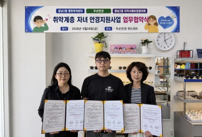 미디어라이프 중부신문 이종인 기자 | 광주시 광남2동 행정복지센터와 지역사회보장협의체는 지역 안경업체 두 손 안경 위드렌즈와 함께 취약계층 아동·청소년의 시력 보호와 학습환경 개선을 위한 안경 지원사업 업무협약을 체결했다고 28일 밝혔다.
