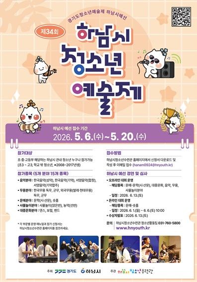 미디어라이프 중부신문 최부일 기자 | 하남시가 주최하고 하남시청소년수련관이 주관하는 ‘2026 제34회 하남시청소년예술제’가 오는 6월 13일 하남시청소년수련관에서 개최된다.