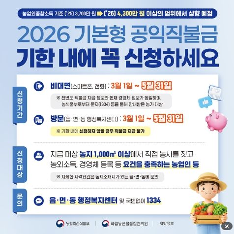 미디어라이프 중부신문 이도경 기자 | 2026 기본형 공익직불금 기한 내에 꼭 신청하세요.