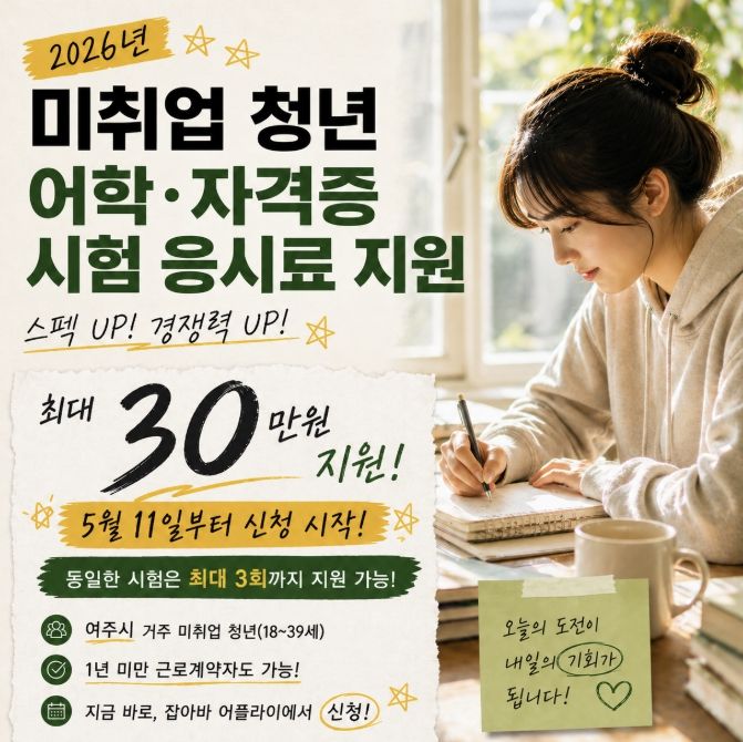 미디어라이프 중부신문 최부일 기자 | 여주시는 오는 5월 11일부터 미취업 청년에 어학·자격시험 응시료를 지원하는 ‘경기청년 역량강화 기회지원’ 사업 접수를 시작한다.
