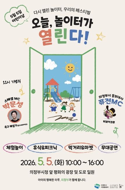 미디어라이프 중부신문 이도경 기자 | 의정부시는 제104회 어린이날을 맞아 5월 5일 오전 10시부터 오후 4시까지 의정부시청 앞 평화의 광장 및 도로 일원에서 ‘2026년 의정부시 어린이날 기념행사’를 개최한다.