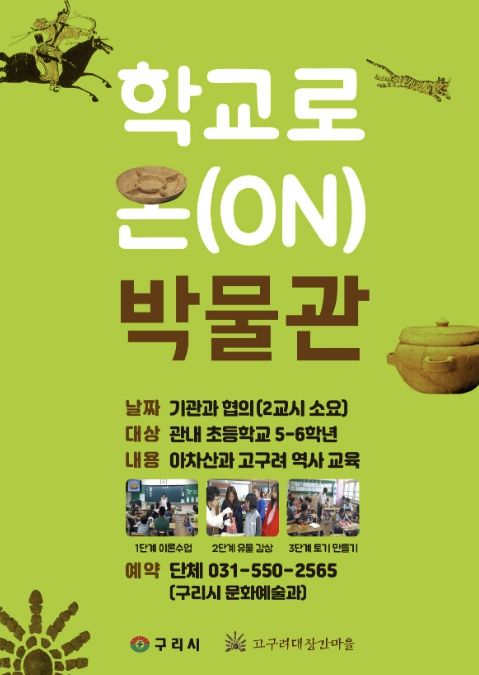 미디어라이프 중부신문 최부일 기자 | 구리시는 4월 28일부터 오는 9월까지 고구려 유물 상자를 들고 관내 초등학교를 찾아가는 ‘학교로 온(ON) 박물관’프로그램을 운영한다고 밝혔다.
