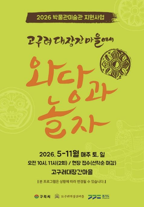 미디어라이프 중부신문 최부일 기자 | 구리시는 오는 5월 2일부터 11월 1일까지 매주 주말 고구려대장간마을에서 2026년 경기도 박물관·미술관 지원사업의 하나로 ‘고구려대장간마을에서 와당과 놀자’ 체험 행사를 운영한다고 밝혔다.