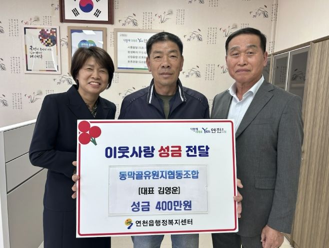 이순미 연천읍장은 “지역 주민을 위한 따뜻한 나눔에 깊이 감사드린다”라며 “기탁해 주신 성금은 도움이 꼭 필요한 이웃들에게 소중히 전달하겠다”라고 말했다.