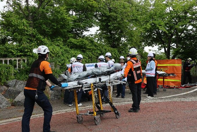 본 훈련은 재난 현장의 ‘첫 단추’라 불리는 선착대의 초동 조치를 중심으로 진행됐다. 화재, 붕괴 등 실제 상황과 유사하게 재현된 현장에서 대원들은 다수사상자 대응 키트 활용하여 START 분류법에 따른 중증도별 환자 분류, 이송 우선순위 결정 및 보고 체계 확립 등 내실 있는 훈련을 진행했다.