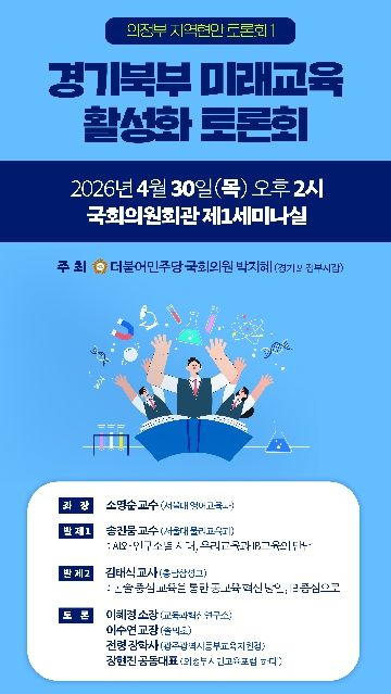 미디어라이프 중부신문 이도경 기자 | 더불어민주당 박지혜 의원(의정부시갑)은 오는 30일 오후 2시, 국회의원회관 제1세미나실에서 '경기북부 미래교육 활성화 토론회'를 개최한다.