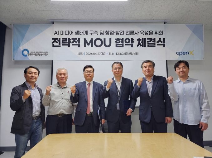 미디어라이프 중부신문 이도경 기자 | 한국인터넷신문방송기자협회(회장 전병길, 이하 협회)와 오픈엑스(대표 김미진)는 지난 2026년 4월 27일 서울 상암동 DMC첨단산업센터에서 업무협약(MOU)을 체결하고, 제휴 언론사 육성과 건강한 미디어 생태계 강화를 위해 적극 협력하기로 뜻을 모았다.
