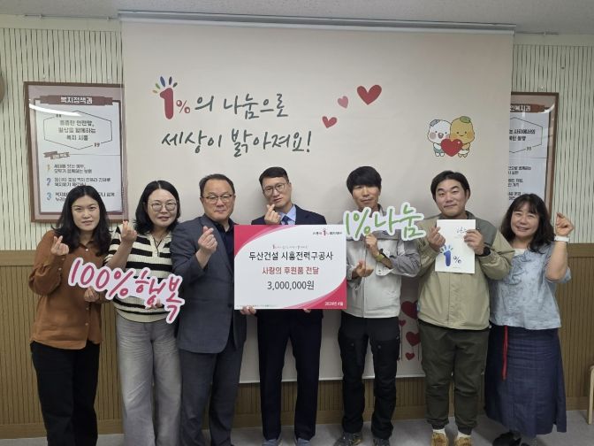 심윤식 복지국장은 “지역 어린이들을 위해 뜻깊은 나눔을 실천해 주신 두산건설 시흥전력구 현장의 관계자들에게 깊이 감사드린다”라며 “이번 후원이 어린이들의 건강한 성장 기반을 마련하는 데 도움이 되길 기대한다”라고 말했다.