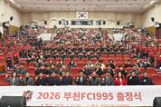 미디어라이프 중부신문 이종인 기자 | 부천FC1995가 22일 부천시청에서 2026시즌 출정식을 열고 창단 첫 K리그1 시즌을 앞둔 각오를 시민들과 함께 다졌다. 부천시는 오는 3월 1일 K리그1 개막전을 치르는 구단이 1부리그에서 당당히 경쟁할 수 있도록 지원하는 동시에, 경기 관람과 문화 체험, 소비가 이어지는 ‘스포츠 기반 지역경제 활성화’를 본격화할 계획이다. ◇ 팬·시민 열기로 가득했던 ‘K리그1 첫 시즌 출정식’ 성황 속 마무리 부천FC1995는 이번 출정식에서 사상 첫 K리그1 무대를 앞두고 구단주와 주요 내빈, 프로·유소년 선수단, 시민과 팬들이 한자리에 모인 가운데 출사표를 던졌다. 시청 로비에서는 한지호·백동규·바사니 등 주요 선수들의 팬 사인회와 스톱워치 이벤트, 포토존 등 장외 프로그램이 열려 현장 분위기를 달궜다. 본 행사에서는 김규민·성신·이충현 등 유망주를 꾸준히 배출해 온 유소년 선수단을 시작으로 프로 선수단과 스태프가 차례로 소개됐다. 부천시는 유소년부터 1군까지 이어지는 축구 생태계를 꾸준히 강조해 왔으며, 지난해에는 부천FC1995 U-18팀이 제47회 문화체육관광부장관배