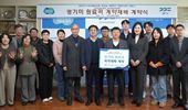 계약식에는 이영순 경기도농업기술원 연구개발국장과 심성규 김포시농업기술센터 기술지원과장, 기원종 김포특수가공미영농조합 가공미 단지 대표, 계약업체 관계자 등 총 18명이 참석했다. 이들은 ‘보람찬’ 쌀의 안정적인 생산·수급을 위한 지