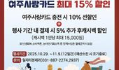 미디어라이프 중부신문 이종인 기자 | 여주시는 ‘2025 코리아 그랜드 페스티벌’ 기간인 오는 10월 29일부터 11월 9일까지 ‘여주사랑카드 최대 15% 할인’ 행사를 한다고 밝혔다.