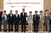 미디어라이프 중부신문 이종인 기자 | 경기도의회 더불어민주당이 30일 예담채에서 교섭단체 운영현황 공유 및 상호 교류·협력 강화를 위해 경기도의회를 방문한 제주도의회 더불어민주당과 간담회를 진행했다. 제주도의회에서 송창권 대표(외도·이호·도두동), 김기환 부대표(이도2동갑), 하성용 부대표(안덕면), 강성의 정책위원장(화북동), 홍인숙 대변인(아라동갑) 등이, 경기도의회에서는 최종현 대표의원을 비롯해 장한별 총괄수석부대표(수원4), 신미숙 기획수석(화성4), 이채명 소통·협력수석(안양6), 남종섭 전 대표의원(용인3)이 간담회에 함께했다. 최종현 대표의원은 환영사를 통해 “경기도의회에서도 지금까지 경험과 노하우를 가감없이 의원님들과 함께 공유하고, 제주도의회의 경험도 함께 귀중하게 새겨듣겠다”면서 “오늘 만남으로 교섭단체 역할과 기능 강화를 위한 논의뿐 아니라 양 의회간 친선과 교류·협력이 더 폭넓고 효과적으로 이루어질 수 있게 되길 바란다”고 전했다. 송창권 대표의원은 “경기도의회의 환대에 감사하다”면서 “오늘 간담회를 통해 경기도의회 교섭단체 운영 현황을 살펴보고, 제주도의회 교섭단체가 더욱 활성화되고