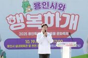 미디어라이프 중부신문 이종인 기자 | 이상일 용인특례시장은 19일 처인구 마평동의 ‘SERI PAK with 용인’ 앞 천연잔디광장에서 열린 ‘2025 용인시와 행복하개’ 축제에 참석해 반려동물 가족과 함께 소통하는 시간을 가졌다. 이번 행사는 반려동물과 시민들이 함께 어울리며 공존할 수 있는 문화를 확산하고, 유기동물 입양을 장려하기 위해 마련됐다. 이날 행사장에는 가족 단위 시민과 반려인 등 5000여 명이 방문해 축제 분위기를 함께 즐겼다. 이상일 시장은 인사말에서 “시는 매년 반려동물과 함께하는 축제를 열며 반려문화 확산과 동물복지 향상을 위해 꾸준히 노력하고 있다”며 “지난해까지 시청 광장에서 열렸던 행사를 올해는 더 좋은 환경에서 시민과 반려동물들이 축제를 즐길 수 있도록 이곳 천연잔디광장으로 옮겨 개최했다”고 말했다. 이 시장은 “용인 시민 110만명 중 25만여 명이 15만 반려동물과 함께하고 있다”며 “앞으로도 반려동물 복지증진과 시민 인식개선을 위한 정책을 지속적으로 추진해 나가겠다. 화창한 가을 날씨 속에서 반려동물과 함께 즐거운 추억 많이 남기시길 바란다”고 했다. &nb