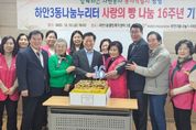 미디어라이프 중부신문 이종인 기자 | 광명시 하안3동 나눔누리터는 광명시자원봉사센터, 하안3동 행정복지센터와 함께 지난 19일 하안3동 행정복지센터 2층 회의실에서 ‘사랑의 빵 나눔’ 16주년 기념식을 개최했다. 이번 기념식은 지역 내 취약계층을 위해 꾸준히 봉사활동을 이어온 나눔누리터의 16년간의 성과를 되돌아보고 나눔의 의미를 나누는 자리로 마련했다. 행사에는 박승원 광명시장을 비롯해 광명시자원봉사센터 거점 4개 동의 나눔누리터 코디네이터 및 임원, 자원봉사센터 관계자, 지역 단체장 등 50여 명이 참석했다. 하안3동 나눔누리터는 광명시자원봉사센터의 거점 조직으로, 2009년부터 매주 빵과 돈가스, 치킨 등을 후원받아 관내 취약계층 60여 명에게 전달하는 봉사활동을 16년째 이어오고 있다. 또한 쌀이 필요한 주민들을 위한 ‘쌀 항아리’를 운영하고 있으며, 매년 두 차례 바자회를 열어 수익금으로 어려운 이웃에게 쌀과 생필품을 전달하는 등 다양한 나눔 활동을 꾸준히 실천하고 있다. 박승원 시장은 “16년이라는 긴 시간 동안 나눔누리터의 활동이 이어질 수 있었던 것은 지역에 대한 애정