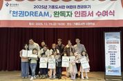 미디어라이프 중부신문 이종인 기자 | 용인특례시 기흥도서관은 19일 기흥도서관 시청각실에서 ‘천권DREAM 완독자 인증서 수여식’을 개최했다고 22일 밝혔다. 올해 프로그램엔 총 268명의 어린이가 참여했으며, 그중 5명이 완독 목표인 1000권을 달성했다. 이날 행사에는 1000권을 완독한 어린이 5명과 가족 등 총 14명이 참석한 가운데 어린이에겐 완독 인증서와 기념 메달을, 보호자에겐 독서지도 감사장을 전달했다. ‘천권DREAM’은 기흥도서관이 5~7세 어린이를 대상으로 운영하는 독서 습관 형성 프로그램이다. 다양한 주제의 도서를 담은 ‘책 꾸러미’를 대출해 가정에서 보호자와 함께 읽는 방식이다. 기흥도서관은 내년에도 ‘천권DREAM’ 신규 참가자를 모집해 프로그램을 이어갈 예정이다. 이날 한 학부모는 “처음엔 1000권이라는 목표가 너무 멀게 느껴졌지만, 매일 아이와 함께 책을 읽다 보니 책이 우리 일상의 중심이 됐다”며 “책을 읽을 때마다 스티커를 붙이고, 메달을 받던 아이의 얼굴에 성취감이 가득했던 순간이 가장 기억에 남는다”고 소감을 전했다. 기