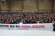 미디어라이프 중부신문 이도경 기자 | 국민의힘 홍성·예산 당협위원회, 충남도당위원회(위원장 강승규 국회의원)는 17일 오후 2시, 예산군 덕산면 복합문화체육센터에서 당원 2,000여 명이 참석한 가운데 ‘2025 국민의힘 홍성·예산 송년연수 및 당원교육’을 성황리에 개최했다. 이번 당원교육은 한 해를 마무리하며 지역 당원들의 노고를 격려하고, 내년 지방선거의 필승 의지를 다지기 위해 마련됐다. 덕산면 복합문화체육센터 앞마당에서 열린 예산군 향토무형문화재 예덕상무사의 공연을 시작으로, 홍성군 당협 자문위원의 색소폰 연주와 예산군 시니어라인댄스팀의 무대가 이어지며 열띤 분위기 속에서 막을 열었으며, 오랜만에 한자리에 모인 당원들은 공연을 함께 즐기며 화합과 소통의 의미를 되새겼다. 특별강연에는 국민의힘 5선 중진인 나경원 전 원내대표가 ‘국정운영의 현실과 보수정당의 방향’을 주제로 강연을 펼쳤다. 나 전 원내대표는 “이재명 정부의 사법 파괴와 독선적 행정이 대한민국의 법치와 균형을 무너뜨리고 있다”며 “국민의힘이 국민 곁에서 정의와 상식을 지키는 버팀목이 되어야 한다”고 강조해 큰 호응을 얻었다. 강승규 의원
