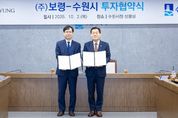 미디어라이프 중부신문 이종인 기자 | 수원특례시가 ㈜보령과 민선 8기 22호 투자협약을 체결했다. 2일 시청 상황실에서 열린 협약식에는 이재준 수원시장, ㈜보령 임종래 부사장 등이 참석했다. ㈜보령은 광교에 있는 중앙연구소를 확대하고, 적극적으로 투자하기로 했다. 수원시는 중앙연구소 확장이 원활하게 진행될 수 있도록 행정·재정 지원을 한다. ㈜보령은 국내 최초 고혈압 신약 ‘카나브’를 비롯해 국민 건강에 필수적인 의약품을 개발, 공급하고 있는 기업이다. 지난해 연결 기준 매출 1조 171억 원을 기록했으며, 국내 제약사 중 항암제 시장 점유율 1위를 기록하는 등 제약사업에서 선도적인 성과를 내고 있다. ㈜보령 임종래 부사장은 “수원에서 더 발전해서 양질의 일자리를 창출하고, 지역사회에 이바지하는 기업이 될 것”이라며 “이재준 시장님께서 수원을 첨단과학연구도시로 만들겠다고 하셨는데, ㈜보령이 도움이 되도록 노력하겠다”고 말했다. 이재준 수원시장은 “국민들에게 친근한 회사인 ㈜보령이 수원에서 세계적인 바이오 기업으로 성장하길 바란다”며 “㈜보령이 꾸준히 성장할 수 있도록, 수원시가 적극