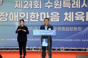 미디어라이프 중부신문 이종인 기자 | 수원특례시의회는 9일, 수원실내체육관에서 열린 ‘제21회 수원특례시 장애인 한마음 체육대회 개회식’에 참석해 선수단을 격려했다. 이날 행사에는 이재식 의장을 비롯한 수원특례시의회 의원, 수원시장애인체육회와 수원시장애인복지단체연합회 관계자, 선수 400여 명과 보호자, 심판 등이 함께해 대회의 열기를 더했다. 이재식 의장은 축사를 통해 “이번 대회는 누가 더 잘하느냐의 경쟁보다 함께 뛰고 웃으며 서로의 마음을 나누는 자리가 되길 바란다”며, “수원특례시의회는 장애인 여러분이 스포츠를 통해 도전과 열정을 마음껏 펼칠 수 있도록 지속적으로 관심을 가지고 아낌없이 지원하겠다”고 밝혔다. 한편, 이번 대회는 수원시장애인체육회와 수원시장애인복지단체연합회가 주최·주관했으며, 슐런·투호·한궁·육상·족구 등 12개 종목에서 선수들이 기량을 겨루며 화합의 장을 만들었다.